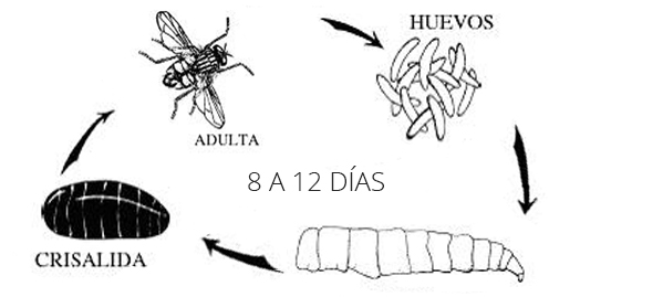 Las moscas verdes o moscones se reproducen a partir de los 13°C y tienen un desarrollo más rápido con mayor temperatura. Con 13°C se puede demorar en desarrollar hasta 37 días y a 31°C puede demorarse solo 11,5 días.